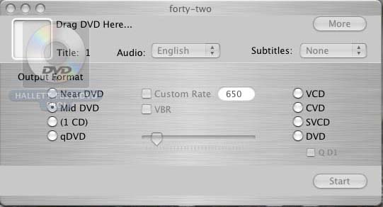 Insert the DVD you wish to backup, and drag it to the Forty-Two window where it says "Drag DVD Here...". |
